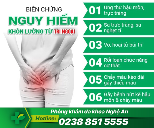 – Rối loạn chức năng cơ thắt hậu môn: Trĩ nặng có thể dẫn đến cơ thắt hậu môn suy yếu, gây khó kiểm soát phân và hơi, ảnh hưởng nghiêm trọng tới sinh hoạt hằng ngày.