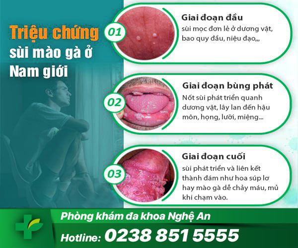 Qua những chia sẻ trên giúp bạn đọc nắm được biểu hiện sùi mào gà nam. Nếu còn bất cứ băn khoăn gì hãy vui lòng liên hệ với phòng khám thông qua hotline 0238.851.5555 sẽ được tư vấn miễn phí 24/7. Hoặc trực tiếp đến phòng khám đa khoa Nghệ An để thăm khám và chữa trị kịp thời.