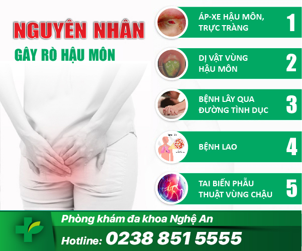 – Viêm nhiễm sau phẫu thuật: những bệnh nhân đã từng làm các phẫu thuật về các bệnh trực tràng, niệu đạo,… nhưng không được chăm sóc an toàn thì rất dễ bị bị viêm và rò hậu môn.