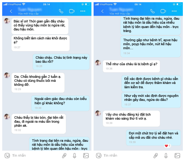 Trên đây là những thông tin về vấn đề hiện tượng bị đau rát hậu môn là bệnh gì. Để đặt lịch hẹn thăm khám chỉ cần nhấp vào khung chat hoặc gọi đến Hotline: 0238.851.5555 hoặc Zalo: 0858.83.59.69, các bác sĩ và đội ngũ tư vấn của chúng tôi sẽ liên hệ với bạn ngay. Đặt hẹn online sẽ giúp bạn tiết kiệm được thời gian, chi phí mà còn được miễn phí sổ khám bệnh, được ưu tiên thăm khám trước và hưởng nhiều ưu đãi khác.