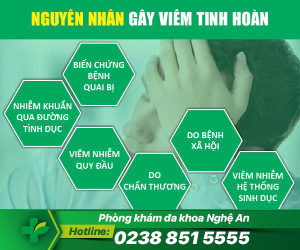 Theo các bác sĩ chuyên nam khoa Phòng khám Đa Khoa Nghệ An, có rất nhiều nguyên nhân gây viêm tinh hoàn, có thể kể đến:
