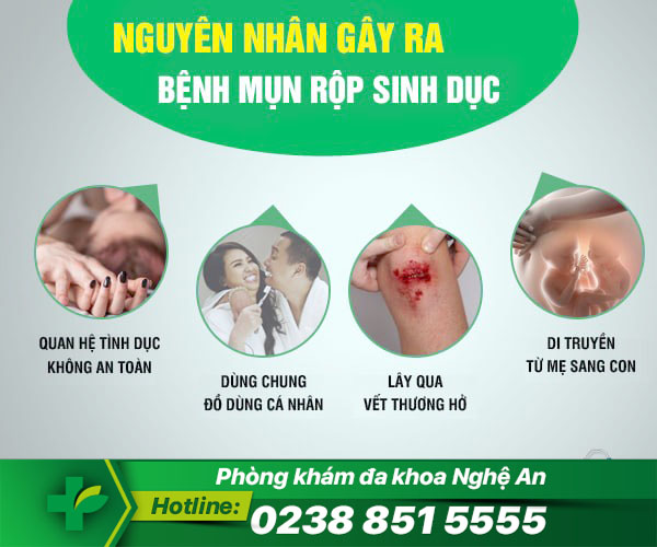 Mụn rộp sinh dục là một trong những căn bệnh lây truyền qua đường tình dục phổ biến hiện nay. Bệnh gây ra do virus Herpes Simplex Virus (Viết tắt là HSV) xâm nhập gây viêm nhiễm tại đường sinh dục ở cả nam và nữ giới. Theo các bác sĩ chuyên khoa tại Phòng khám Đa Khoa Nghệ An, nguyên nhân mắc bệnh mụn rộp sinh dục là do virus HSV xâm nhập từ người này sang người khác, thông qua nhiều con đường khác nhau.