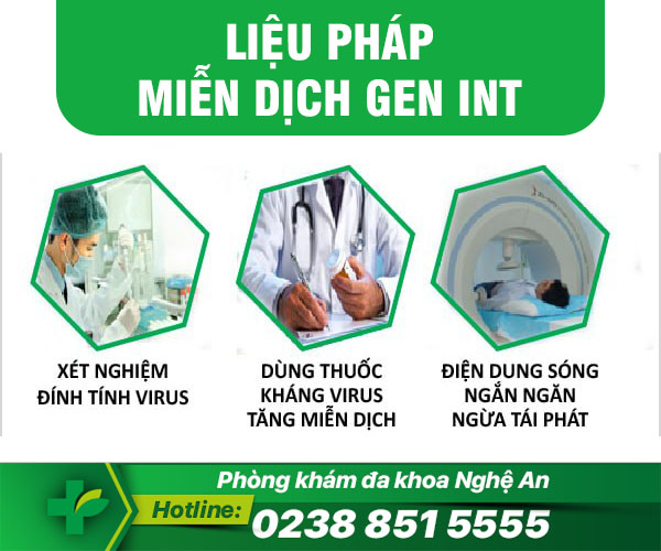 Sau khi làm xét nghiệm kiểm tra xác định nguyên nhân gây bệnh? Đánh giá mức độ bệnh nhẹ hay nặng? Từ đó bác sĩ sẽ đưa ra phác đồ điều trị thích hợp. Hiện tại, các bác sĩ phòng khám đa khoa Nghệ An đang áp dụng Liệu pháp miễn dịch gen sinh học INT – điều trị bệnh mụn rộp sinh dục.