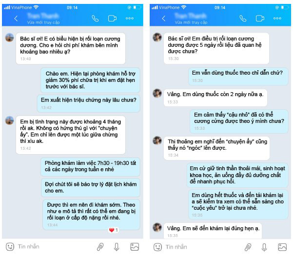 Phòng khám đa khoa Nghệ An đã tiếp nhận và điều trị thành công cho nhiều trường hợp bị mắc bệnh rối loạn cương dương. Nhận được phản hồi tích cực từ phía bệnh nhân: