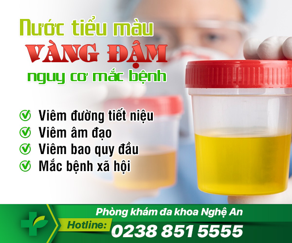 Hiện tượng khi đi tiểu nước tiểu có màu vàng đậm nhiều khả năng là dấu hiệu cảnh báo các bệnh xã hội lây truyền qua đường tình dục như bệnh lậu, chlamydia, mụn rộp sinh dục. Khi cơ quan sinh dục và niệu đạo bị vi khuẩn, virus hoặc ký sinh trùng tấn công. Sẽ gây viêm, đau rát, tạo ra dịch mủ hoặc nước tiểu có mùi hôi, màu vàng đậm, dẫn đến tiểu buốt và khó chịu.