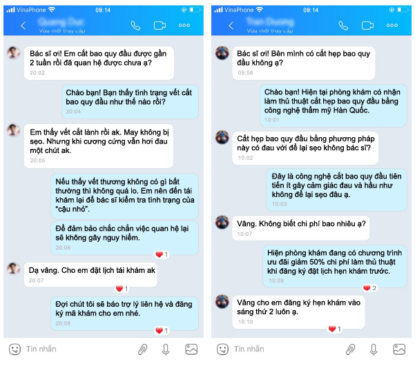 Thanh H (Nghệ An) chia sẻ: “Tôi từng cắt bao quy đầu tại phòng khám. Lúc đầu nghe thấy từ thủ thuật thì vừa sợ vừa run. Nhưng sau khi được bác sĩ tư vấn tận tình thì tôi yên tâm lắm. Chỉ 15 phút là xong rồi mà không đau đớn gì hết. Đặc biệt, giờ cảm thấy tự tin hơn về khi quan hệ, không có mùi hôi như trước nữa.”
