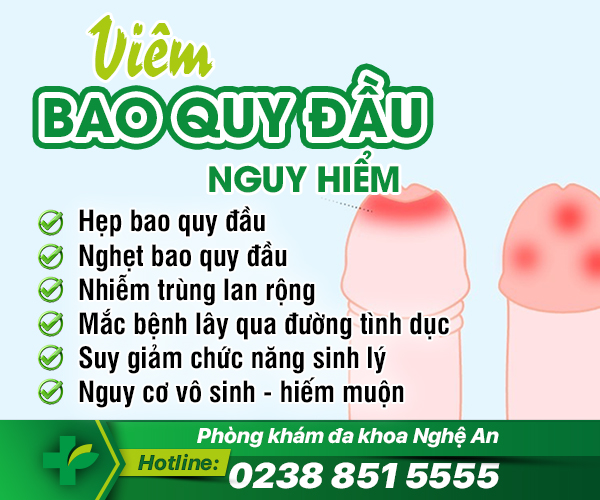 Phòng khám đa khoa Nghệ An là một địa chỉ tin cậy dành cho nam giới. Không chỉ ứng dụng thành công các phương pháp chữa bệnh tân tiến. Giúp bệnh nhân điều trị bệnh viêm bao quy đầu an toàn, hạn chế tái phát.