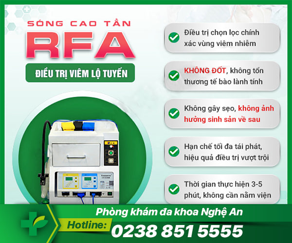 Phương pháp RFA điều trị polyp cổ tử cung, theo đó, các bác sĩ sử dụng nhiệt nội sinh từ các bước sóng cao tần, tác động trực tiếp và loại bỏ khối polyp bằng cách cắt lát mỏng. Thêm nữa, sóng cao tần RFA còn giúp tăng khả năng thâm nhập sâu hơn vào vùng nhiễm bệnh, đồng thời hạn chế gây thương tổn tới các tế bào lành tính lân cận. Sóng cao tần RFA sẽ giúp loại bỏ hiệu quả khối polyp cổ tử cung và các tổ chức mô bị viêm nhiễm.