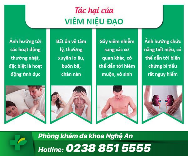 Trên đây là những chia sẻ giúp bạn đọc thận trọng với tác hại của viêm niệu đạo. Nếu còn bất cứ băn khoăn gì hãy vui lòng liên hệ với phòng khám thông qua hotline 0238.851.5555/ 0858.83.59.69 sẽ được tư vấn miễn phí 24/7. Hoặc trực tiếp đến phòng khám đa khoa Nghệ An để thăm khám và chữa bệnh bằng phương pháp tân tiến.