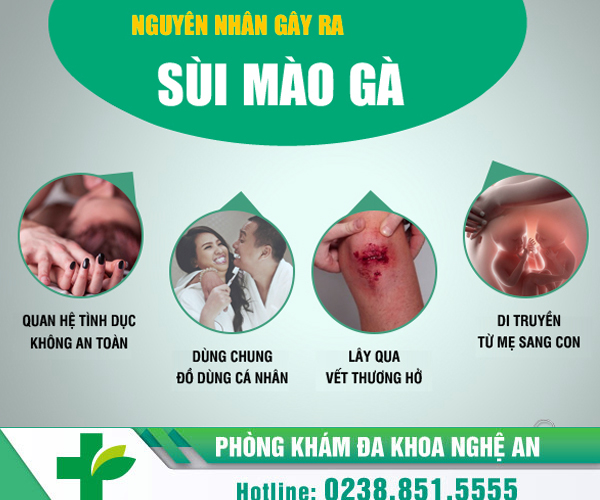 Sùi mào gà (mụn cóc sinh dục) là bệnh lây truyền qua đường tình dục (STDs) phổ biến do virus HPV (Human Papillomavirus) gây ra, đặc trưng bởi các nốt sùi mềm, màu da hoặc hồng nhạt giống mào gà/súp lơ ở bộ phận sinh dục, hậu môn,…Căn bệnh này có thể lây nhiễm từ người này sang người khác qua nhiều con đường khác nhau. Cụ thể nguyên nhân bị mắc bệnh sùi mào gà là: