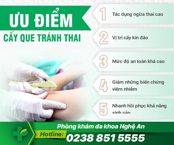 Phương pháp cấy que tránh thai tại đa khoa Nghệ An có rất nhiều ưu điểm nổi bật, một số ưu điểm lớn của phương pháp này khiến nhiều chị em lựa chọn sử dụng có thể kể đến như: