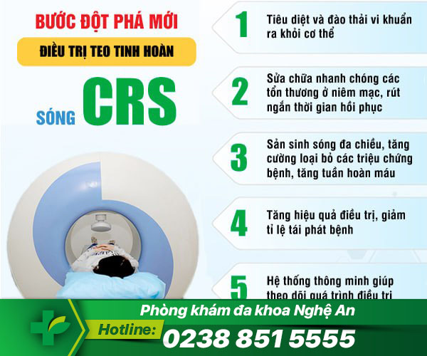 Hệ thống điều trị quang học CRS là một trong những phương pháp hiện đại được các bác sĩ phòng khám đa khoa Nghệ An ứng dụng để điều trị bệnh. Đây là một phương pháp tiên tiến, hiện đại sử dụng hệ thống điều trị CRS để điều trị teo tinh hoàn, viêm tinh hoàn.