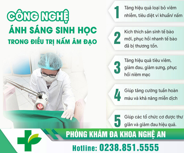 Công nghệ ánh sáng sinh học là phương pháp tiên tiến đang được các cơ sở y tế sử dụng bởi sử dụng ánh sáng sinh học có khả năng diệt vi khuẩn cực tốt, đến thẳng ổ bệnh tiêu diệt sạch nấm có hại. Cùng với đó làm ổn định và cân bằng độ pH ở âm đạo, không gây ảnh hại tới việc sinh nở của chị em.