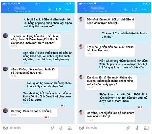 Phòng khám đa khoa Nghệ An đã tiếp nhận và điều trị thành công cho nhiều trường hợp bị mắc bệnh viêm tuyến tiền liệt. Nhận được phản hồi tích cực từ phía bệnh nhân: