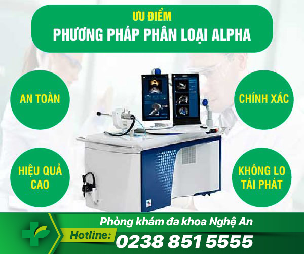 Phương pháp phân loại Alpha được các chuyên gia đánh giá là phương pháp điều trị viêm tuyến tiền liệt tân tiến. Được chuyên khoa nam học phòng khám đa khoa Nghệ An ứng dụng thành công. Giúp nhiều nam giới thoát khỏi những phiền toái do bệnh gây ra.