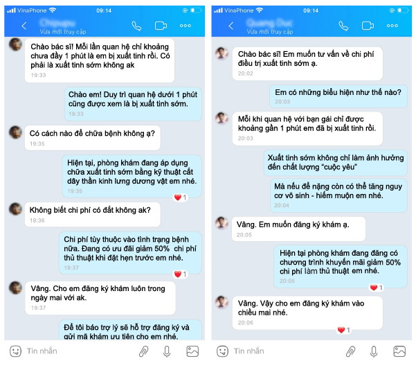 Phòng khám đa khoa Nghệ An đã tiếp nhận và điều trị thành công cho nhiều trường hợp bị mắc bệnh xuất tinh sớm. Nhận được phản hồi tích cực từ phía bệnh nhân: